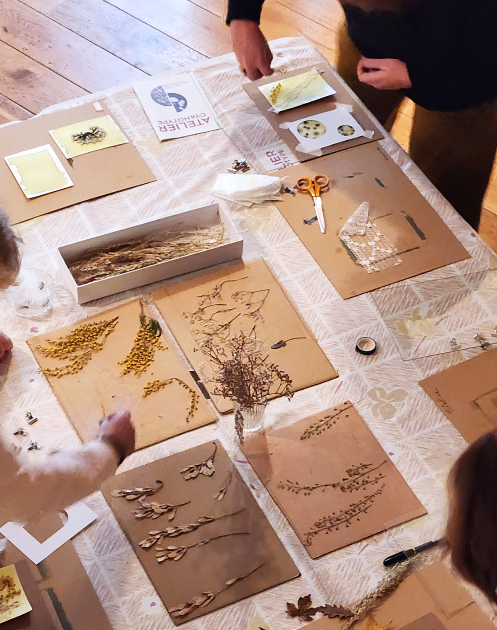 A la fin de l’atelier vous repartirez avec vos réalisations uniques ( 2 à 3 formats A6 en fonction du groupe. ) et un carnet récapitulatif .