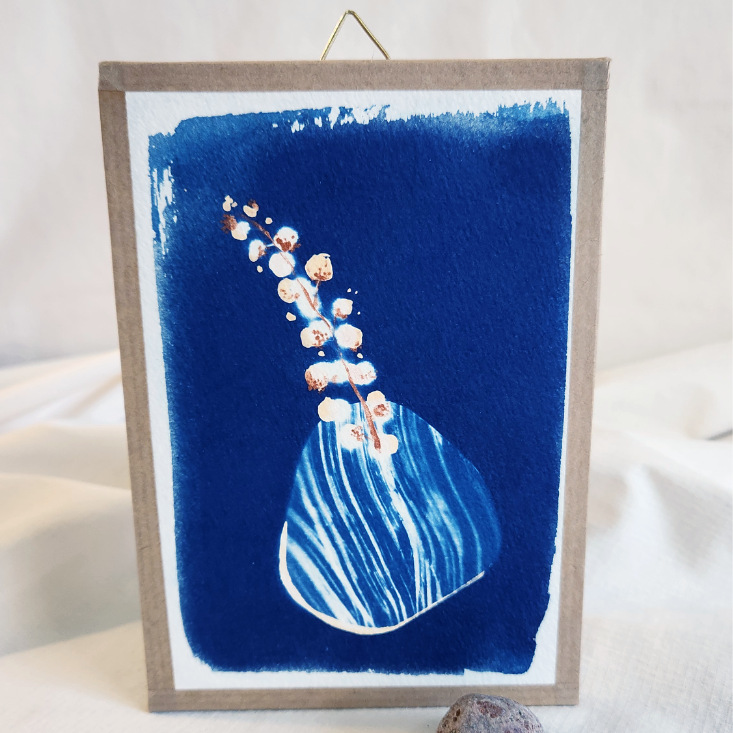 Cyanotype original de format A6 réalisé sur du papier 300g sans acide et fabriqué en France.