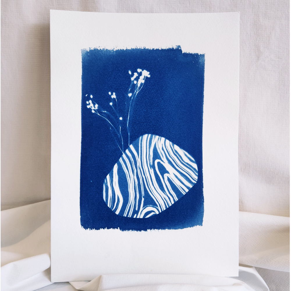 Le cyanotype est une technique photographique ancienne qui utilise des produits chimiques pour créer des impressions bleues uniques. Chaque cyanotype est une œuvre d’art originale.