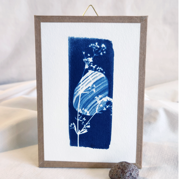 Cyanotype original de format A6 réalisé sur du papier 300g sans acide et fabriqué en France.